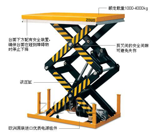 • 雙剪叉設計(jì),起升高度高,最(zuì)高可達2050mm